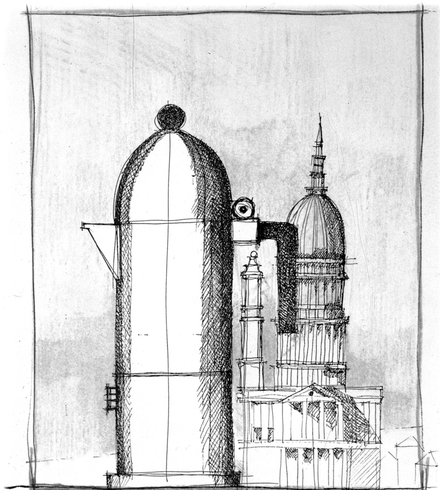 I disegni rappresentano una parte importante dell’opera di Aldo Rossi (Milano, 1931 – ivi, 1997), e una serie di passaggi sempre fondamentali nell’ambito delle sue riflessioni sull’architettura. Sin dai primi anni di attività, quando ancora è studente e scrive per Casabella (storica rivista di settore), il futuro architetto e professore universitario – insigne quanto discussa figura della sua disciplina – partecipa a dibattiti e mostre nelle quali espone le proprie elaborazioni grafiche. Da lì il disegno estemporaneo non lo abbandona mai e, nel corso delle sue commissioni ma anche e soprattutto dei suoi viaggi, gli riempie i momenti liberi. Non a sproposito, per definire la propensione di Aldo Rossi al disegno si può riprendere una considerazione del critico americano Carter Ratcliff (Seattle, 1941): «Rossi is an obsessive diarist».
